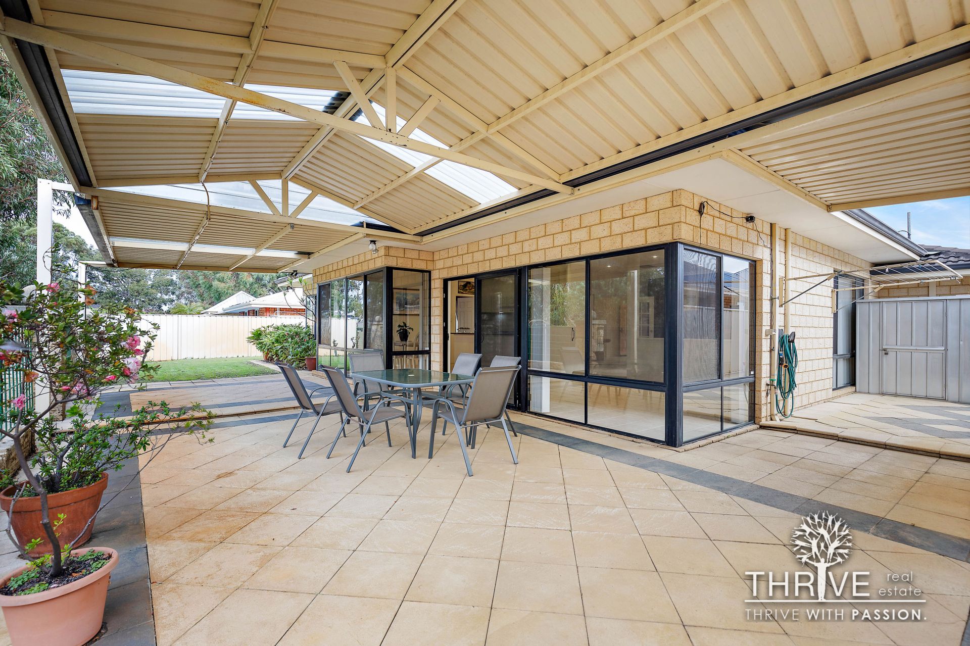 The outdoor patio is large and overlooks the grassed area of the back yard and new open space and walkway directly behind this property, currently under construction by the developers of the new estate. Although Buyers would need to replace or carry out repairs to this existing patio at some stage.