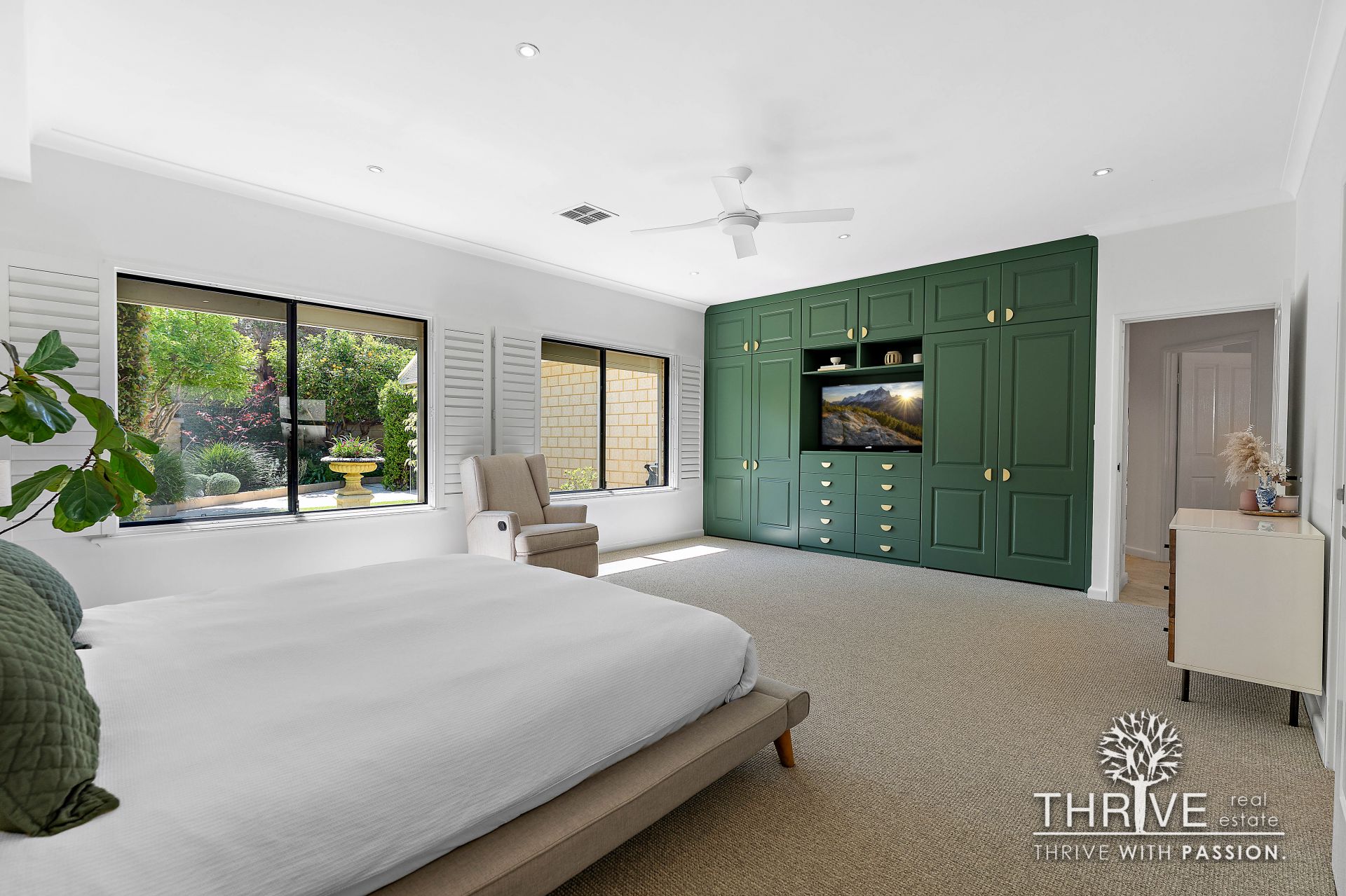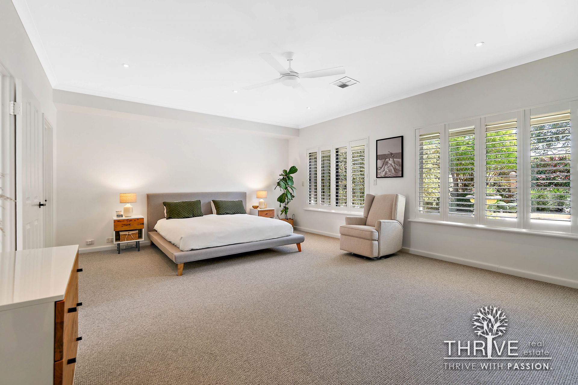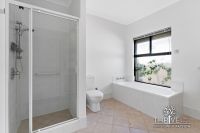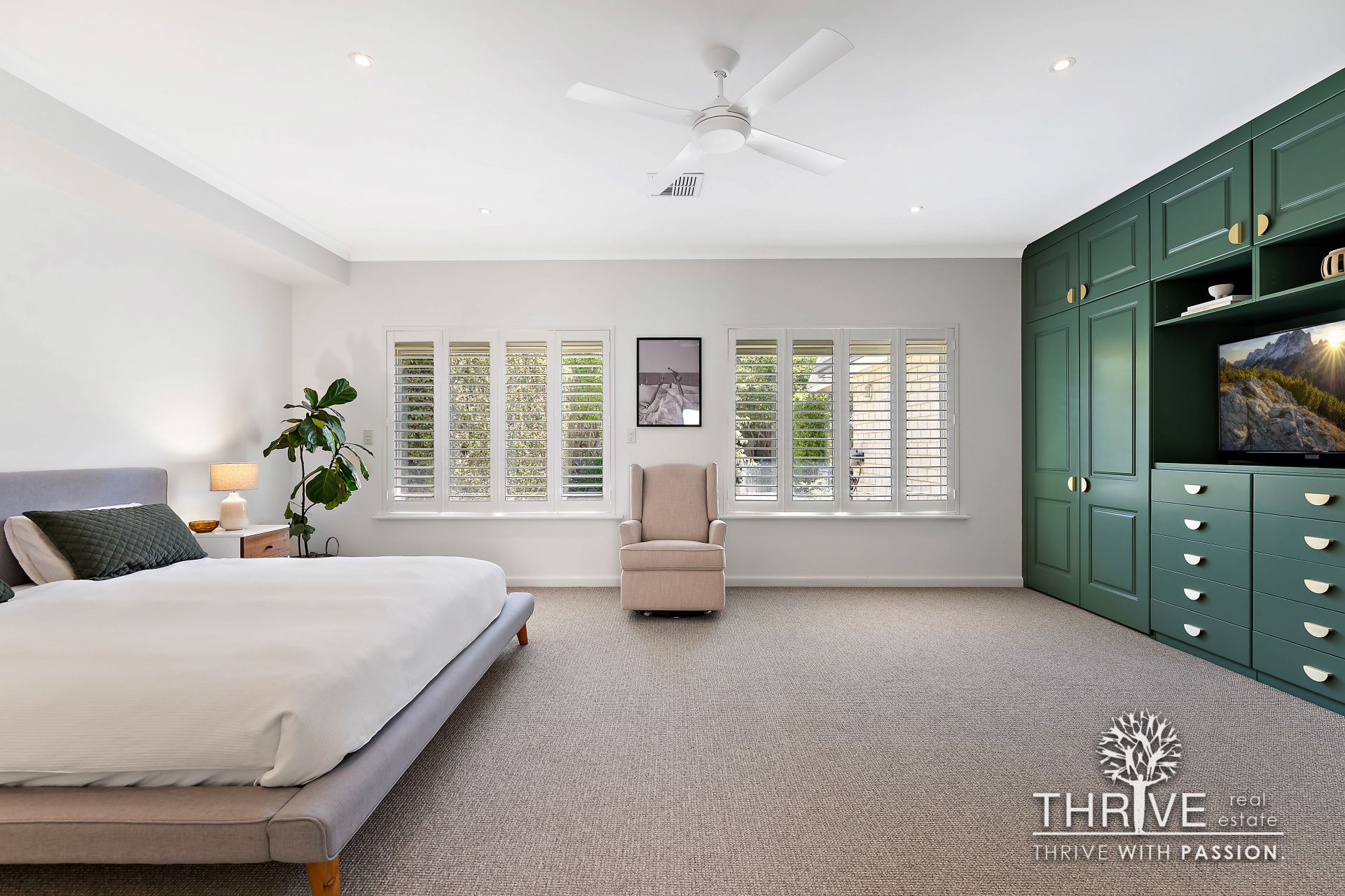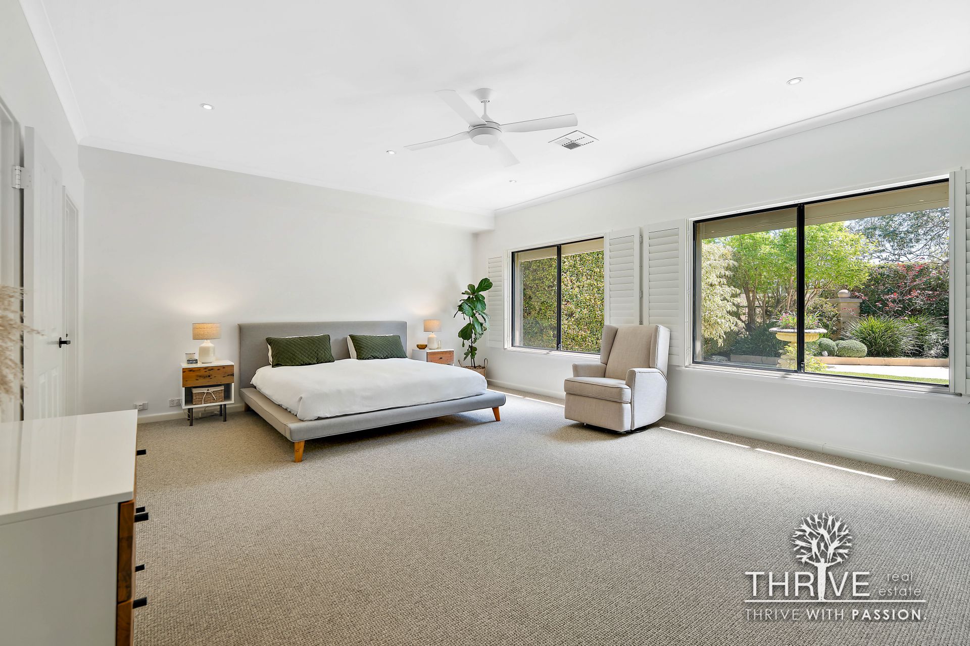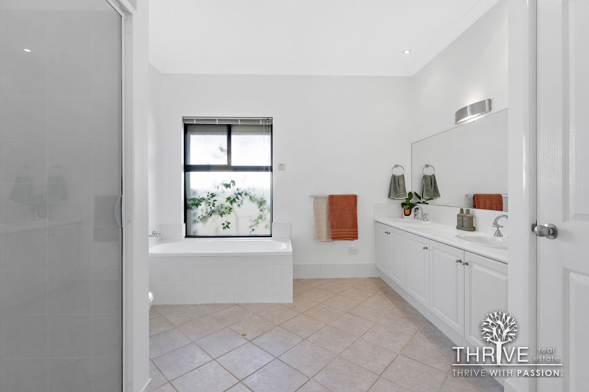 Tucked away at the rear of the home, the luxurious and oversized master suite is a true retreat. Enjoy tranquil views of the garden, a generous walk-in robe + full-width built-ins, and a stylish ensuite bathroom featuring twin vanities, a full bathtub, separate shower, and WC.