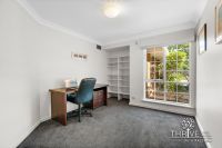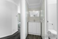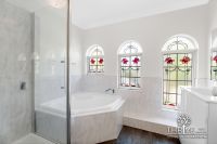 Upstairs, an innovative renovation to the king-sized master bedroom suite includes a walk-in robe and contemporary ensuite with oversized semi-frameless shower with rainhead and handheld fixtures and floor-to-ceiling tiling. At the landing, the original sitting room has been cleverly redesigned as a dressing room with additional wardrobe space, concealed behind sliding partition doors. Two further queen-size bedrooms with built-in double robes, and a contemporary family bathroom with corner bath and arched leadlight windows, complete this exceptional home.