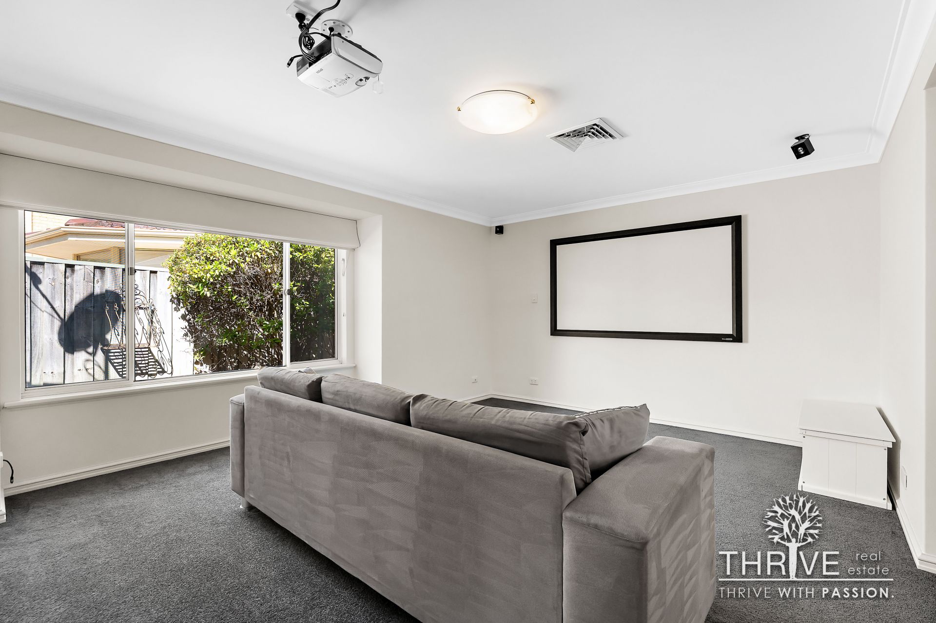The ground level has a family-centric layout with multiple living areas, including a sunken lounge room at the front of the home, open-plan family and meals, and a spacious home theatre with an Epson projector and 1.9m x 1.2m screen for the ultimate viewing experience.