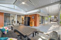 All internal living areas overlook the incredible alfresco, through expansive windows and sliding doors. A wrap-around pitched pergola with ceiling fan facilitates all-season outdoor entertaining for small and large gatherings alike. Limestone-retained garden beds contain an array of trees, including a mature avocado, plums, weeping mulberry, olive and a trained passionfruit vine trailing across the rear and side fence. Watch the kids play in the saltwater pool from indoors or outdoors - or join in the fun!