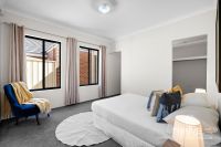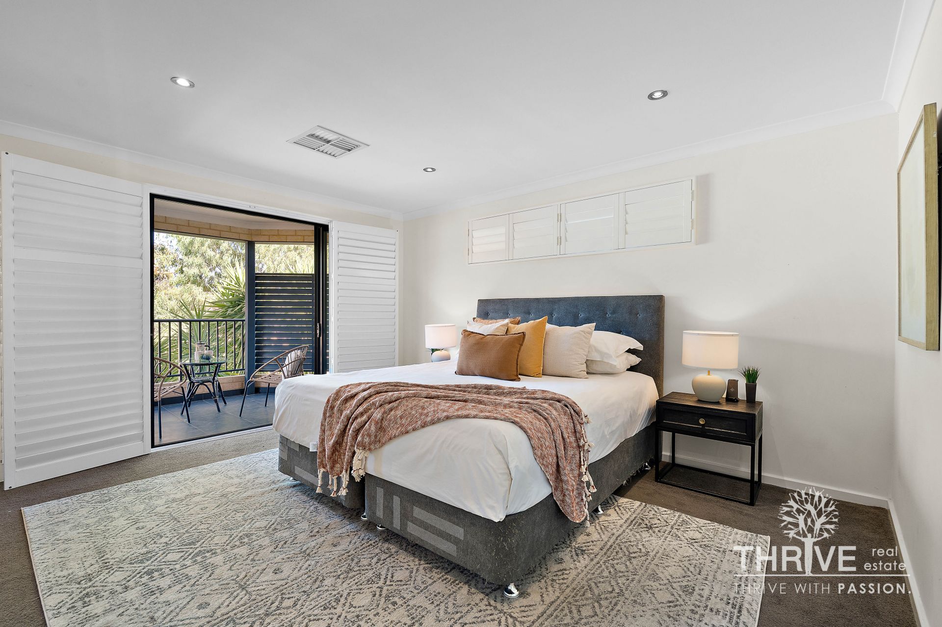 • A spacious bedroom with rear-facing balcony
